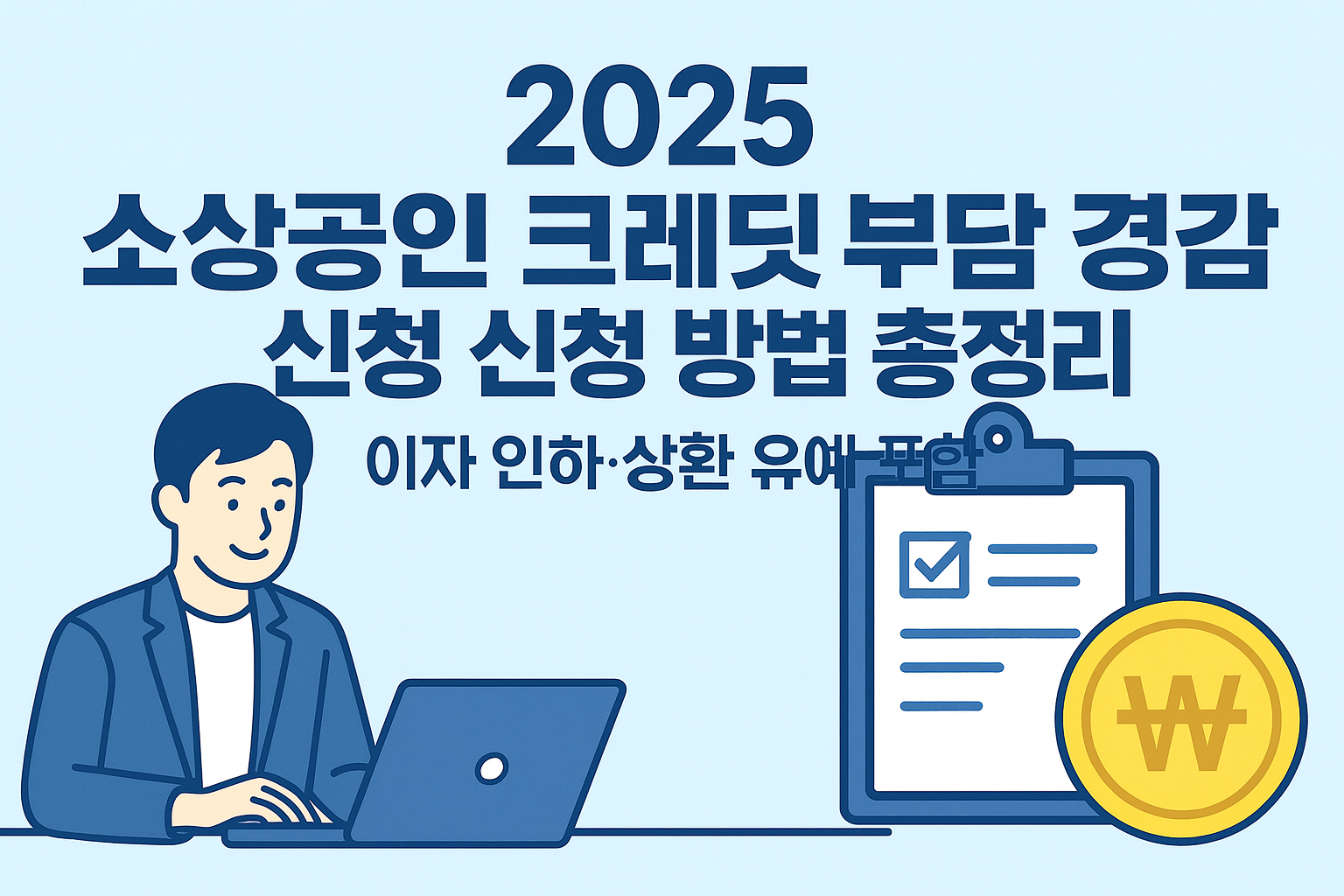 2025년 소상공인 크레딧 부담 경감 신청 방법과 지원 내용 정리. 이자 인하, 상환 유예 등 정부 금융지원 제도를 한눈에 확인하세요.
